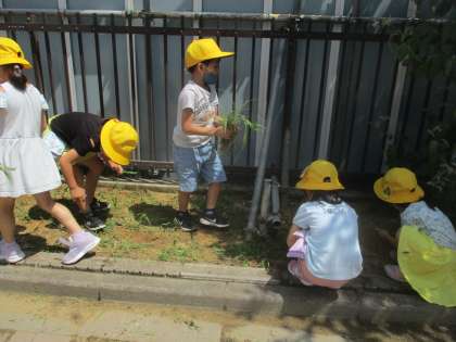 「こんなにいっぱいぬいたよ。」「ここの草もぬいてもいいですか。」など、進んで取り組んでいました。