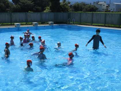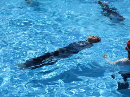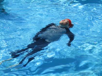 顔を出して浮く練習です。 全身の力を抜くことがポイントです。