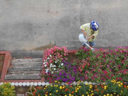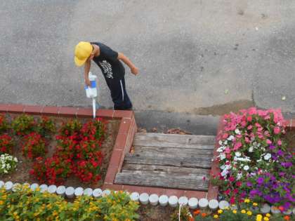 夏休みになっても、学校の花壇に来て、自主的に草木の世話をしてくれる5年生がいます。
