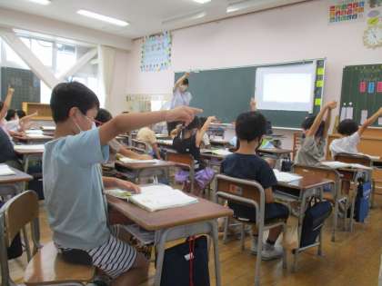 国語の教科書にある「いちねんせいのうた」を音楽に合わせて、手だけで表現しています。