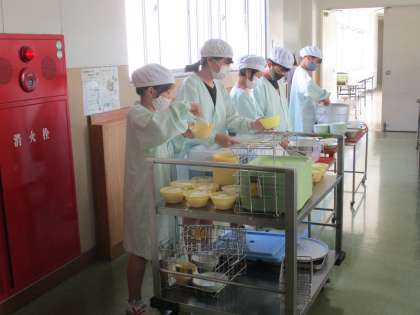 マスクをはずす給食時は感染リスクの高い時間帯です。