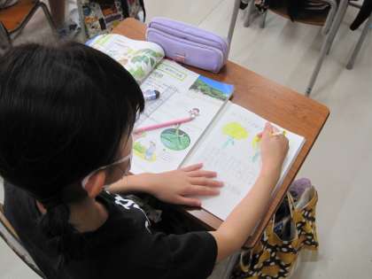 理科の学習では、1学期に植えたヘチマが大きく育ち、観察しました。気付いたことをノートにまとめました。