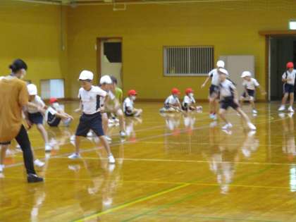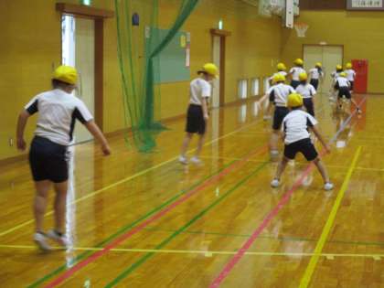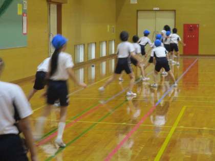 マスクをはずし、しゃべらずにしています。内履きが床とこすれる音だけがしています。
