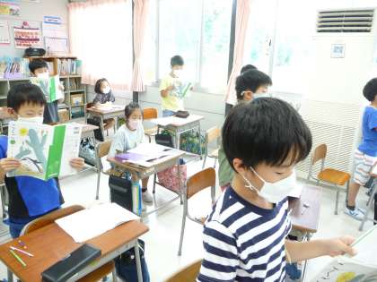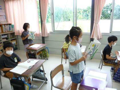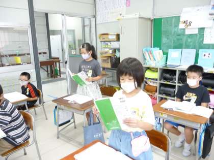 雨が屋根や土にあたる様子を想像して、音読しました。