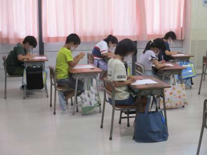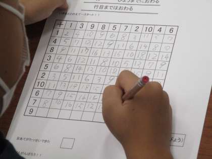 百マス計算に取り組んでいます。 鉛筆の音だけが聞こえます。