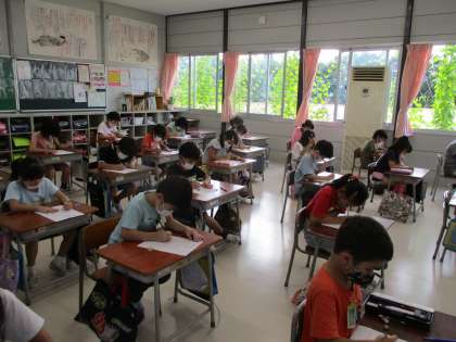 2学期からは100問を一気に解きますが、5分以内に終わる人が何人もいました。夏休みの練習の成果が出ていました。一人一人目標タイムを決め、さらにタイムが上がるように頑張ります。
