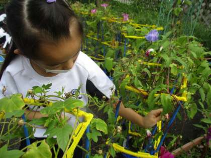 みんなでとって、自分の袋に入れています。中には、100個取ることができたという子供もいました。