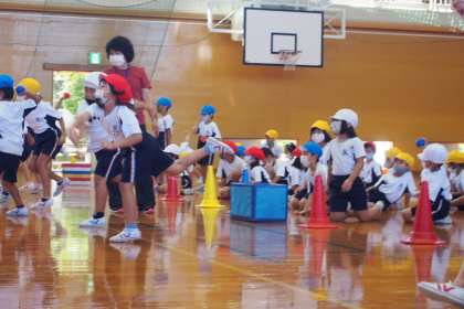 ボールを遠くへ投げる練習をしました。