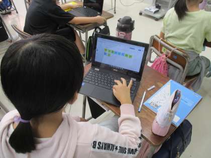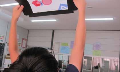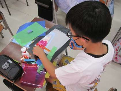 図画工作科では、光を通した様子を確認しながら、作品を仕上げています。
