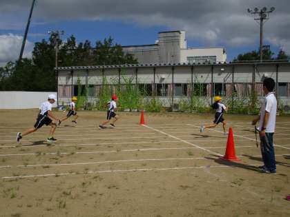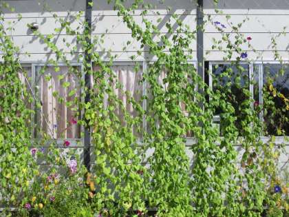 直射日光を遮断する仮設校舎のグリーンカーテンです。