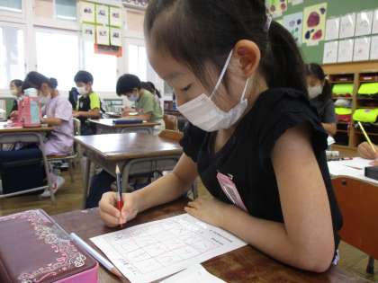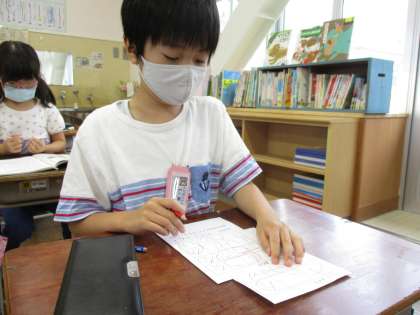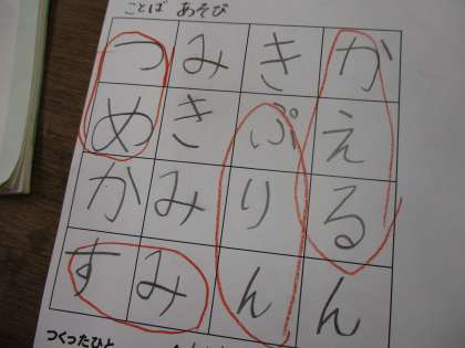 国語では、ことばあそびの問題をつくり、友達と解き合いました。