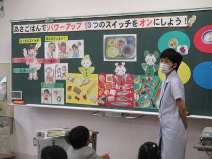 朝ご飯をしっかり食べることの大切さや栄養の種類等について学習しました。