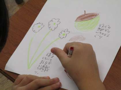 子供たちがみつけた「秋」を描いています。