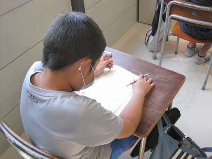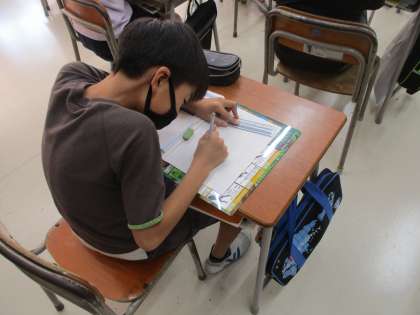 算数では、割り算の筆算の答えを正確に導き出せるように、練習しています。