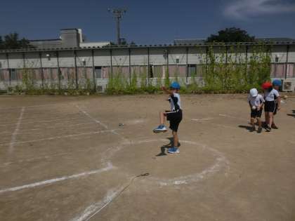 2組の最高記録は21mで、子どもたちは遠くまで飛ばせるよう頑張っていました。
