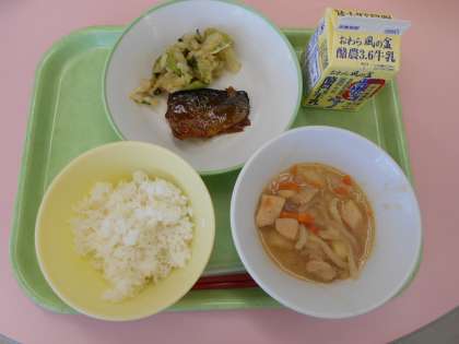 9月21日(火)昨日の献立は、ごはん・牛乳・さばのみりん焼き・おひたし・南蛮煮でした。