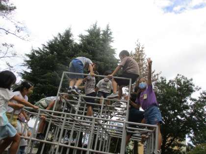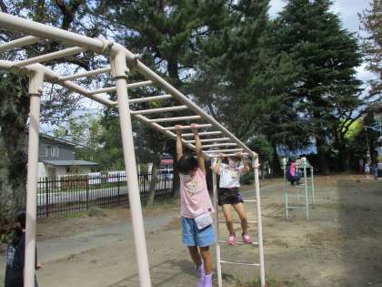 9月22日(水) 2年生 休み時間 公開日 2021/09/22 更新日 2021/09/22 2023年度 2年生 今日は、わんぱく広場で遊びました。ジャングルジムやターザンロープでたくさん体を動かしました。