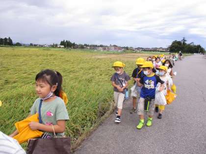 道中もいろいろな秋を見つけながら歩きました。ねこじゃらしやツユクサ、稲が刈り取られた田んぼ等、秋がいっぱいです。