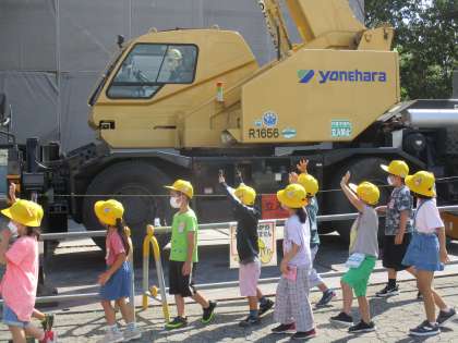 工事車両の近くで見学させてもらいました。