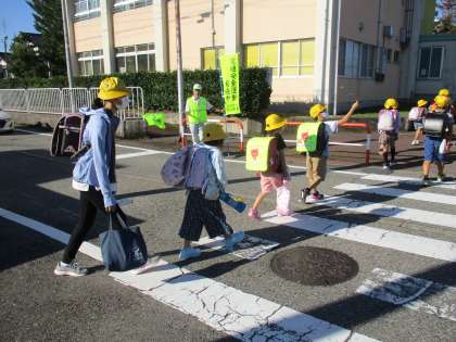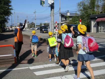 毎朝、地域の方が子供たちを見守っておられます。