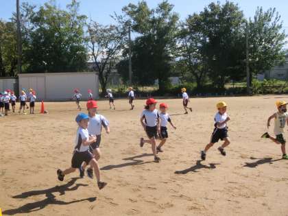 2学期に入り、思い切り走ることができなかったため、笑顔を見せながら楽しく走っていました。
