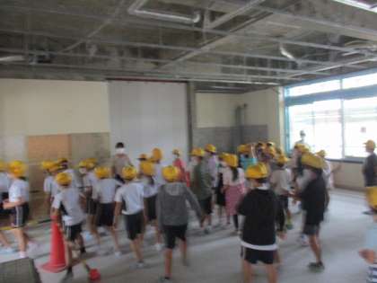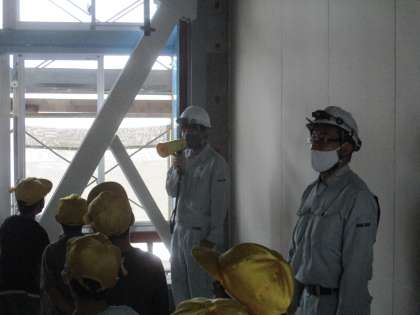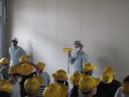 お話にあった、耐震構造物やリサイクルされた資材等を確認することができました。また、子供たちの質問に丁寧に答えていただきました。