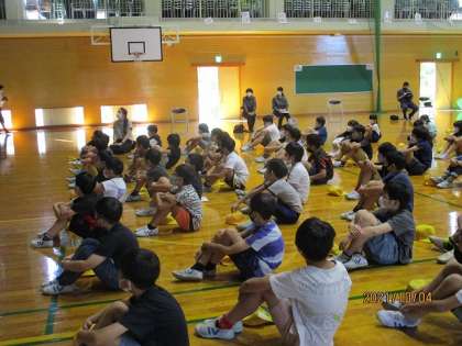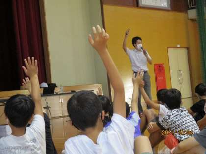 本校の耐震化補強工事を担当している前田建設様による出前授業を学年毎に開いています。今日は、最後の学年、4年生の出前授業の日です。取材も入り、子供たちは、やや緊張気味です。