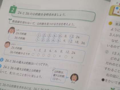 公約数、最大公約数の学習です。