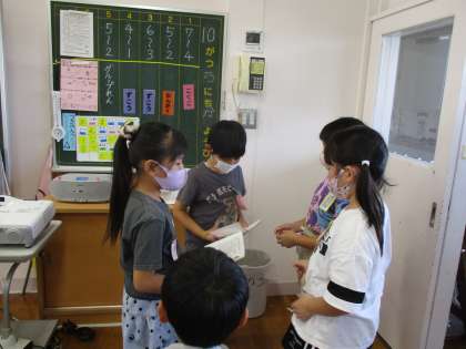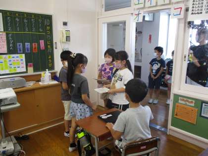 どんなところに秋があるかという質問に答えるだけでなく、「いっしょにさがしにいきたいね」などとあたたかい言葉が添えられていました。また、一年生に合わせてひらがなで書いてくれていました。