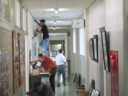 大沢野美術連合会青少年の芸術を育む会による郷土美術作家展が本校で始まりました。