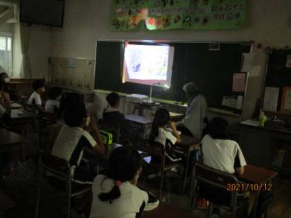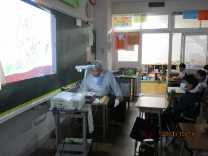 3年2組では、「3びきのかわいいオオカミ」を読んでいただきました。
