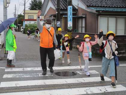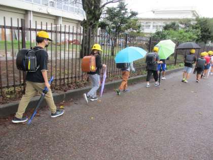 10月13日(水) 雨の朝(3) 公開日 2021/10/13 更新日 2021/10/13 大久保っ子ニュース 雨の日は傘や合羽で見通しが悪くなります。気を付けて! 地域の皆様、ありがとうございます。