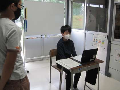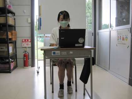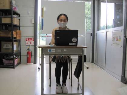 達成度や現状を振り返り、今後に生かす場としてリモートでの児童総会を開きました。以下、委員長が全校にメッセージを送っている場面です。