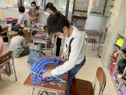 せんたくばさみをたくさん使って、何ができるか考えました。