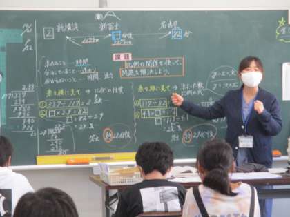 道のり、速さ、時間に関する問題に取り組んでいます。