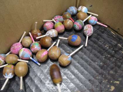 学校で集めたどんぐりなどで作った様々なおもちゃで「1くみランド」ができました。