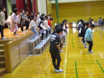 4年生のテーマは、「For You〜明るい笑顔で心を1つに届けよう〜」です。中止になった区域音楽会で発表予定であった合唱とボディパーカションを発表しました。
