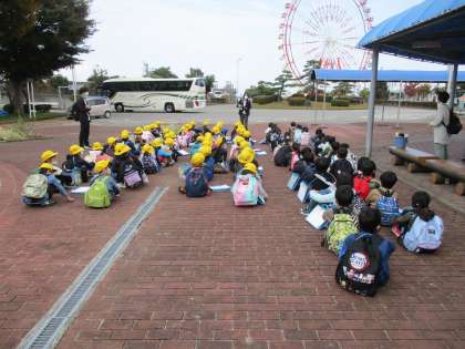 先生の指示がなくても自分たちですばやく並び、見学の注意事項を聞いています。とても立派です。