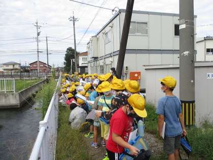 ここは、学校のプールの近くにある用水の様子です。子供達にどこが危険か尋ねてみると、「流れがとても速くて落ちたらすぐ流されてしまいそう」「深くて怖い」「コンクリートで囲まれていて落ちたら上れなさそう」など、しっかりと危険な様子を捉えていました。
