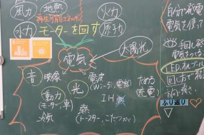 理科の学習では、「電気はどこからやってくる?」ことを考え、電気の利用や発電の仕方など、自分たちの生活を思い出して考えていた子供たちです。自然エネルギーを利用して発電することを知った子供から、SDGsのワードが出てきました。どうやら、SDGsは生活の一部に浸透しつつあるようです。