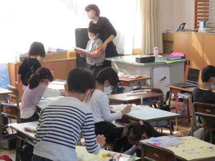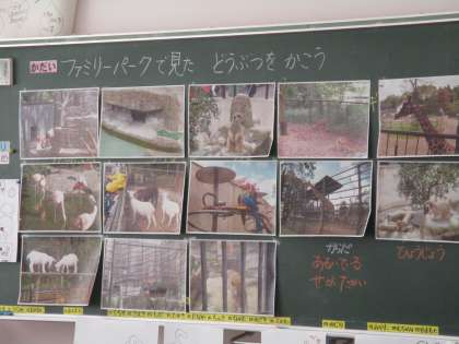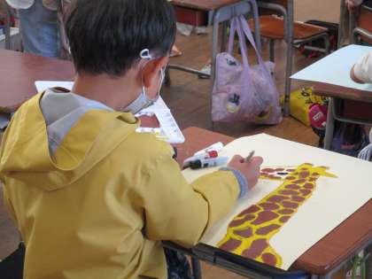 先日の校外学習で訪れたファミリーパークの動物の絵を描きました。