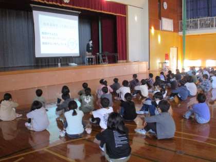 今日は、地球温暖化防止活動推進員が来校され、4年生が取り組んできた活動の振り返りをしました。