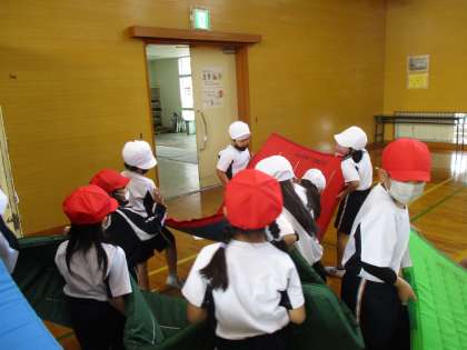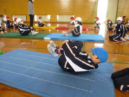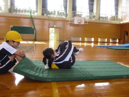 体育の授業では、マット運動が始まりました。