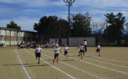 外で50m走をしました。久しぶりに外で走り、子供たちは疲れながらも嬉しそうでした。