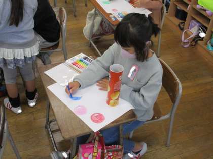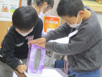 様々な形の箱をなぞって、絵を描きます。