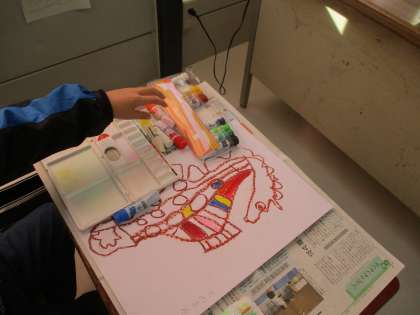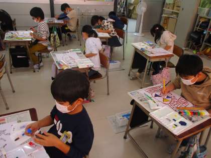 以前書いた下書きに、色を付けました。はみ出さないように丁寧に塗り、カラフルな作品になりました。