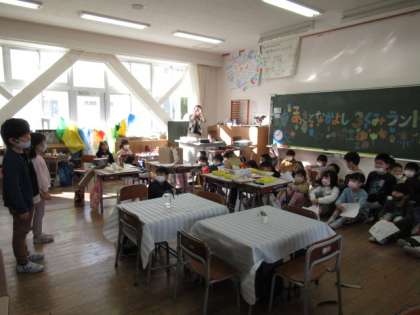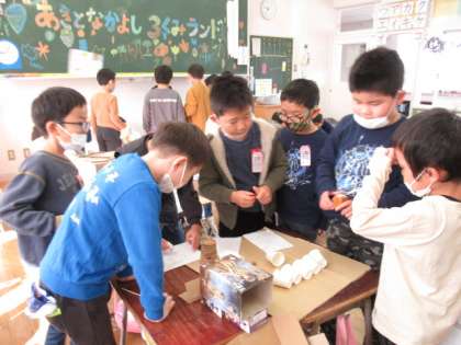 生活科の学習で、「あきとなかよし」の学習を行っています。3組の「あきとなかよし3くみランド」が完成し、1組と2組が招待されました。