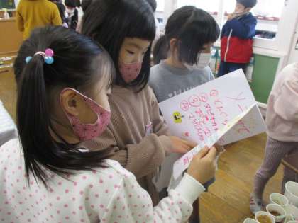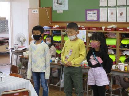11月17日(水) 1年生 あきとなかよし3組ランド(3) 公開日 2021/11/17 更新日 2021/11/17 2023年度 1年生 司会の人も一生懸命にがんばっていました。 3組が考えたメニューを真剣に選んでいました。