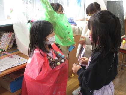 11月17日(水) 1年生 あきとなかよし3組ランド(4) 公開日 2021/11/17 更新日 2021/11/17 2023年度 1年生 服を着て楽しいんだり、たこやきを食べたり、レースをしたりして楽しみました。