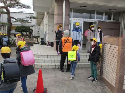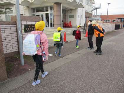 11月18日(木) 朝の風景(1) 公開日 2021/11/18 更新日 2021/11/18 大久保っ子ニュース おはようございます。 委員会の子供が「あいさつ運動」をしています。 また、登校してくる子と「あいさつジャンケン」をしています。